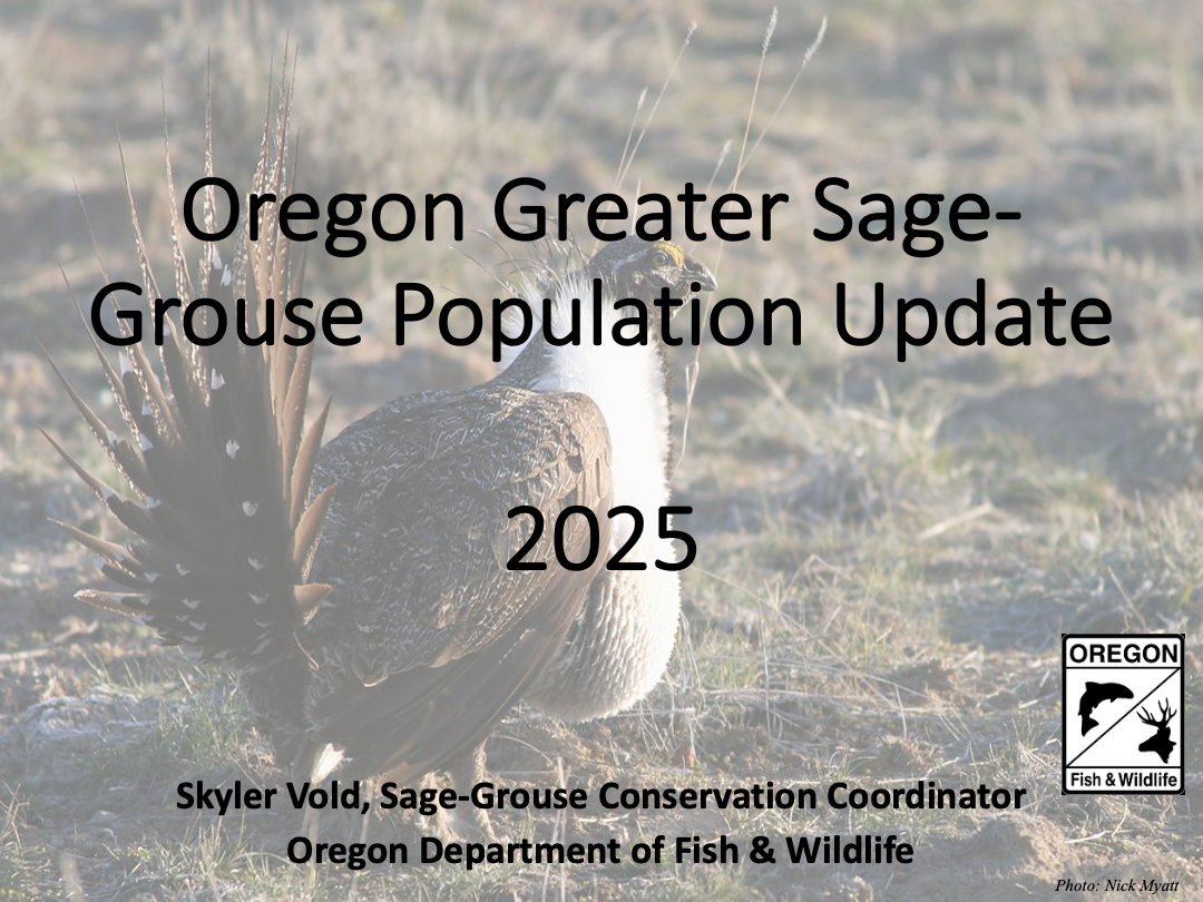 This population report is based on lek data collected during the 2025 sage-grouse breeding season (March-April). The surveys utilized 118 observers from ODFW, BLM, and USFWS, as well as many Adopt-a-Lek Program volunteers, to conduct 1,614 ground surveys and 46 aerial (Pueblo and Steens Priority Conservation Areas) lek surveys. These surveys covered 771 (60.9%) of the known lek sites and 482 (56.6%) of the known lek complexes in Oregon.